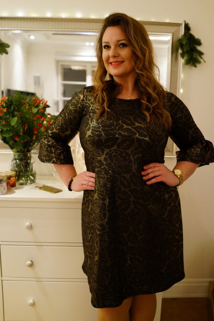 To bardzo wieczorowy, elegancki model, idealny dla osób, które czują się komfortowo, gdy trochę schowają swój brzuszek. Materiał przypomina mi trochę kreacje Kleopatry, którą, jak część z Was pewnie wie, że ubóstwiam. W tym przypadku też polecam minimalizm w doborze dodatków, bo sama sukienka i rękawy jest bardzo strojna.