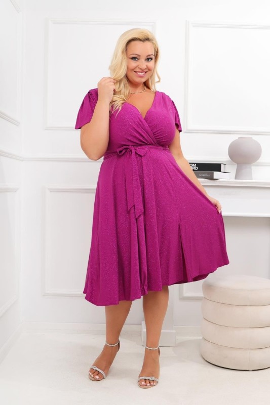 Brokatowa sukienka plus size midi Bele Exline - rękaw motylek ( r.46-54)