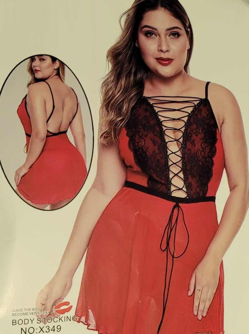 Koszulka plus size babydoll VERA koronką i sznurowaniem