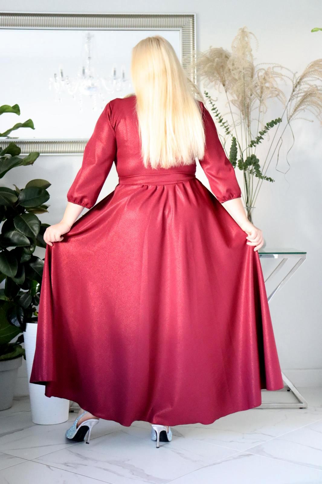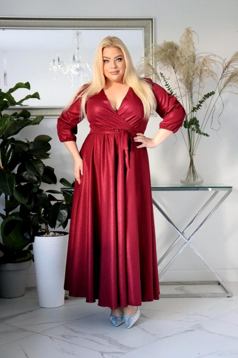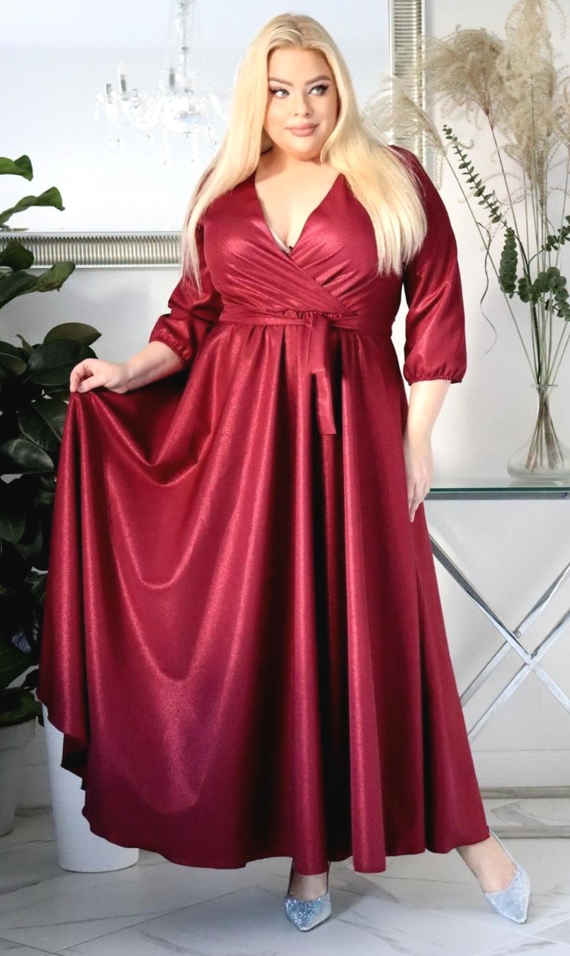 Jeśli szukasz sukienki maxi plus size z brokatem, która nie osypuje się, modelującej sylwetkę i zapewniającej komfort — ten model będzie doskonałym wyborem.