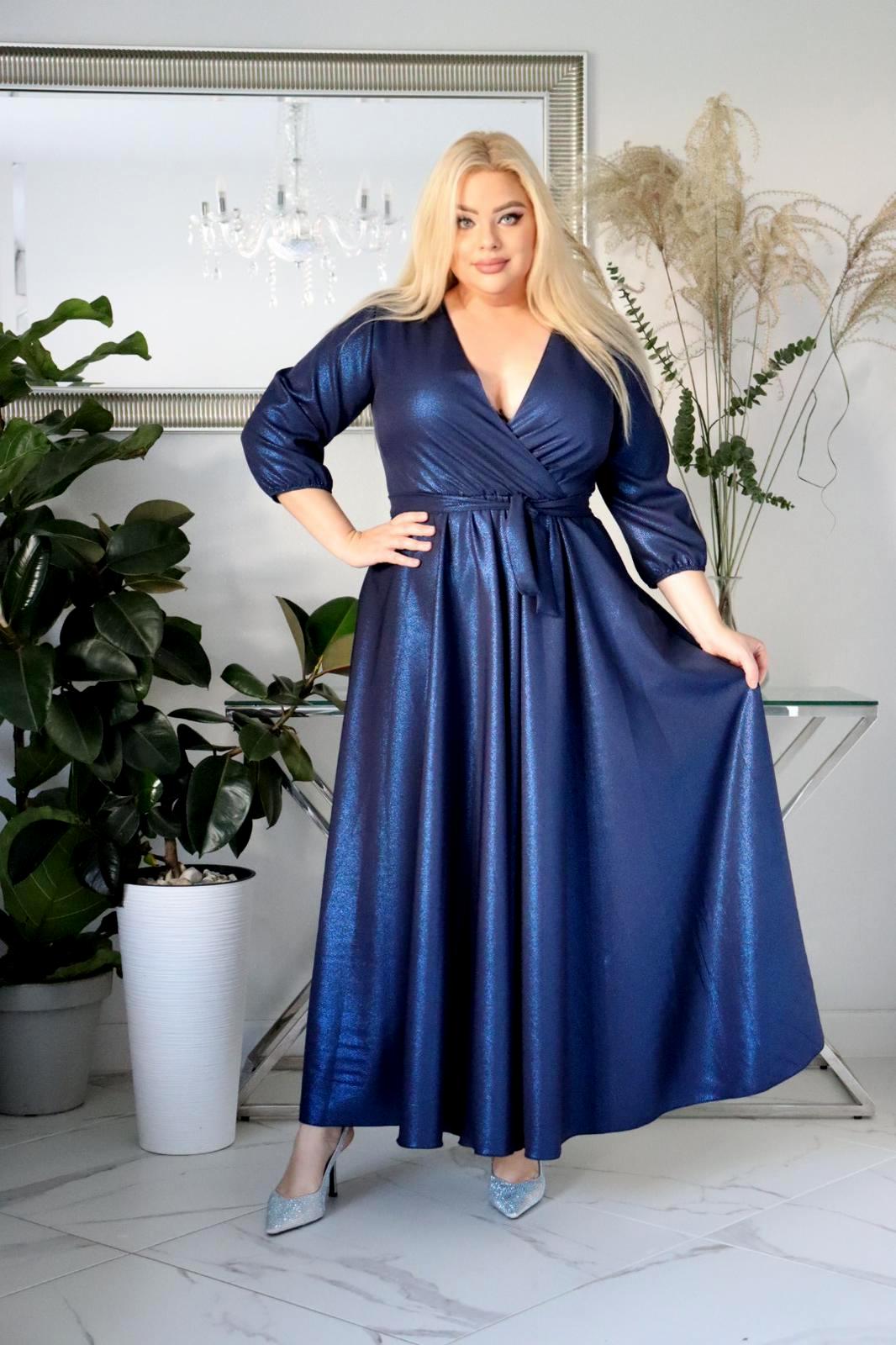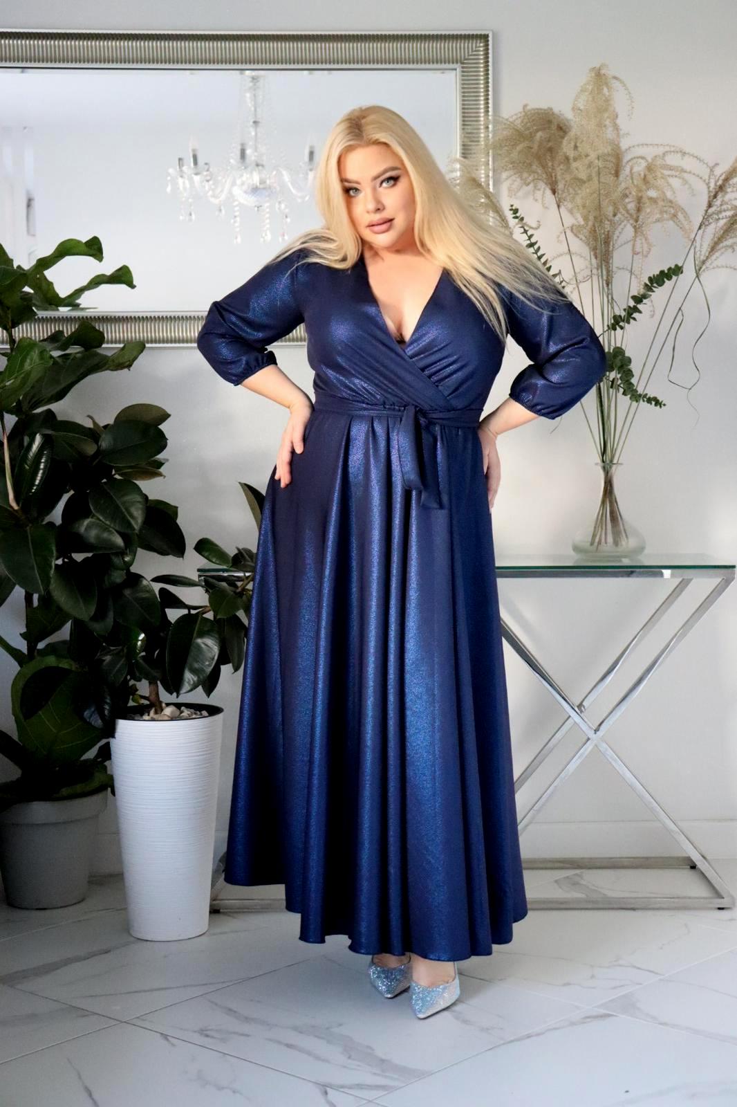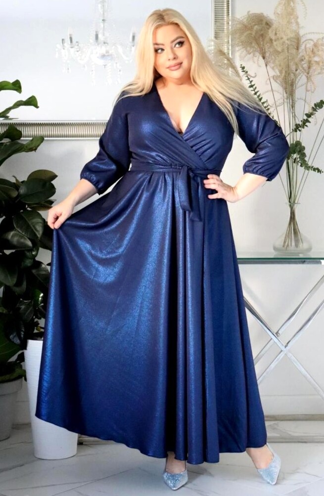 Jeśli szukasz sukienki maxi plus size z brokatem, która nie osypuje się, modelującej sylwetkę i zapewniającej komfort — ten model będzie doskonałym wyborem.