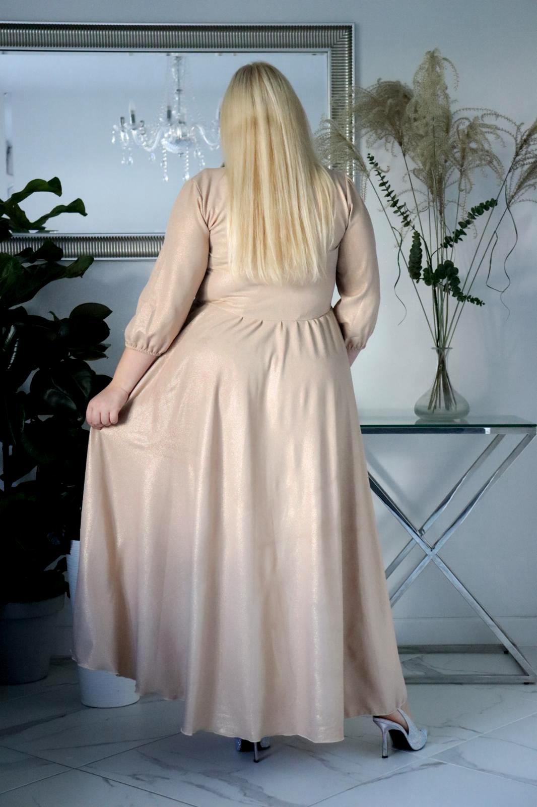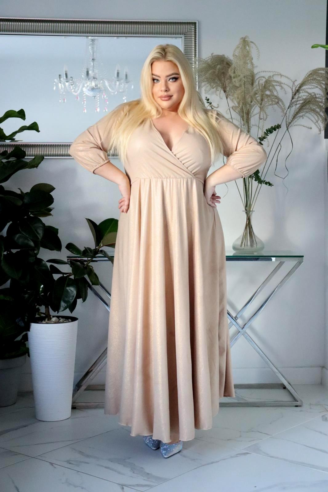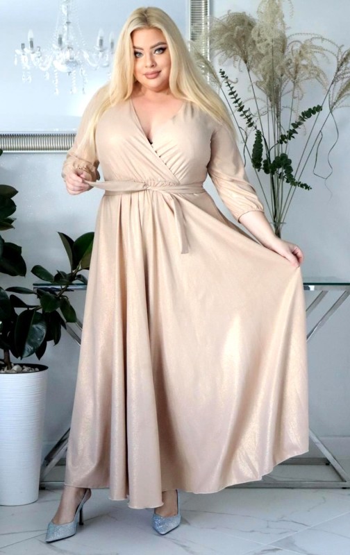 Jeśli szukasz sukienki maxi plus size z brokatem, która nie osypuje się, modelującej sylwetkę i zapewniającej komfort — ten model będzie doskonałym wyborem.