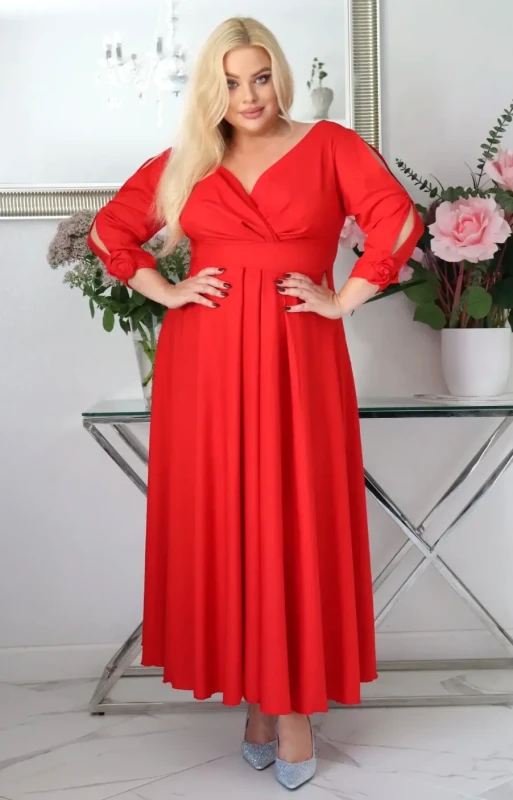 Sukienka maxi z różami na rękawach KOD S1012 (r. 48-56)