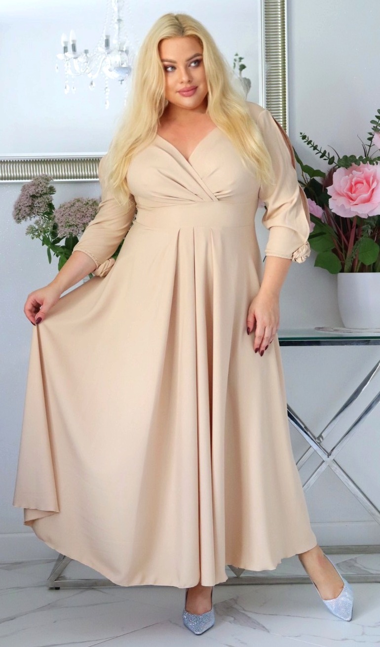 Sukienka maxi z różami na rękawach KOD S1012 (r. 48-56)