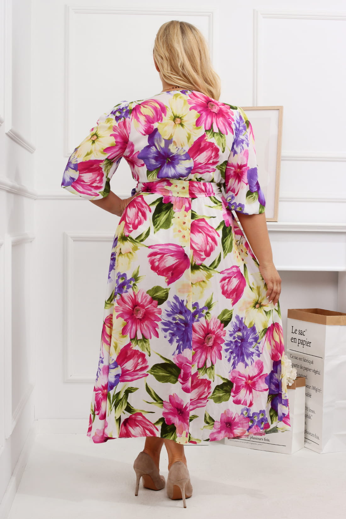 Sukienka plus size Salma w kwiaty na białym tle (r. 44-54)