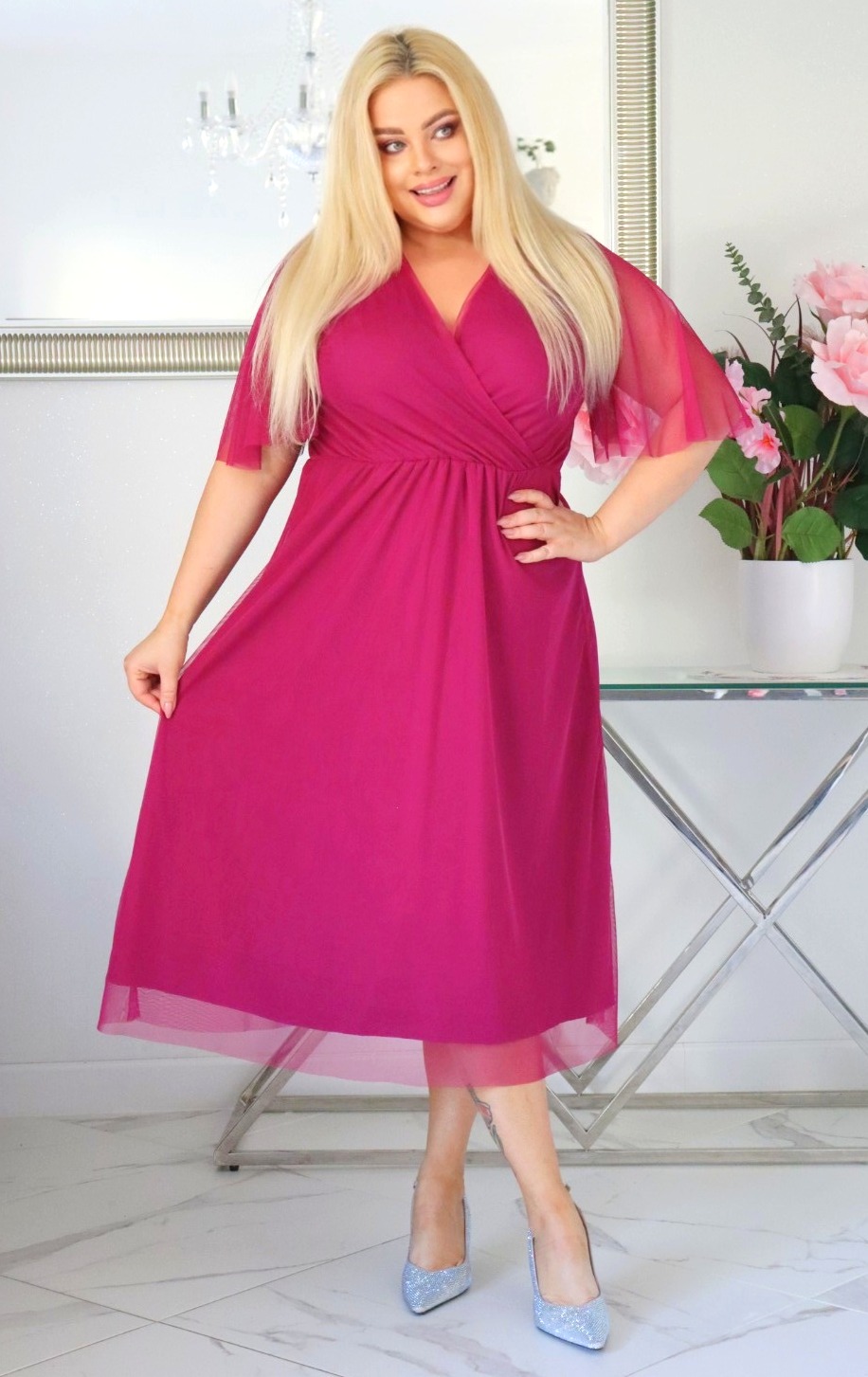 Jeśli szukasz sukienki plus size z tiulem i elastyczną talią, która łączy komfort z elegancją – ten model będzie doskonałym wyborem.