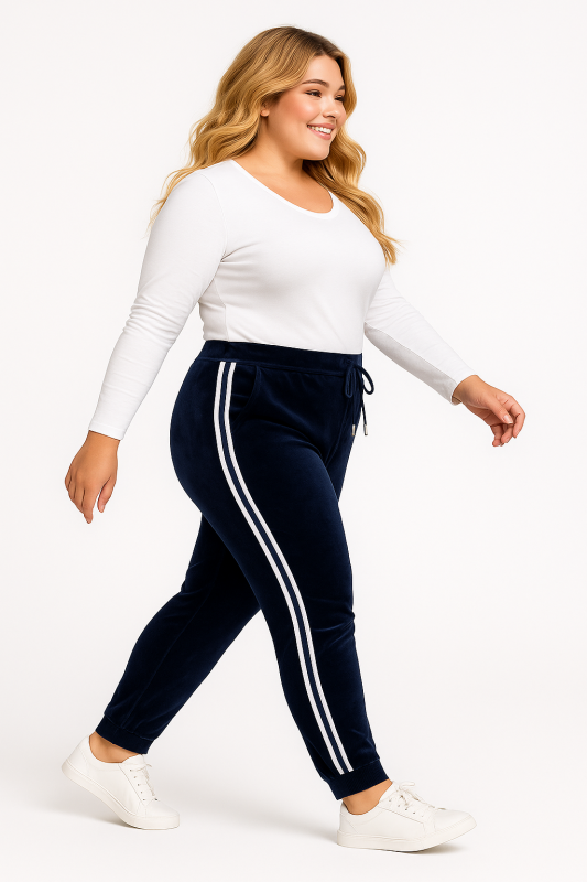 Welurowe spodnie / Legginsy plus size z lampasami ( r. 44-54) BESTSELLER
